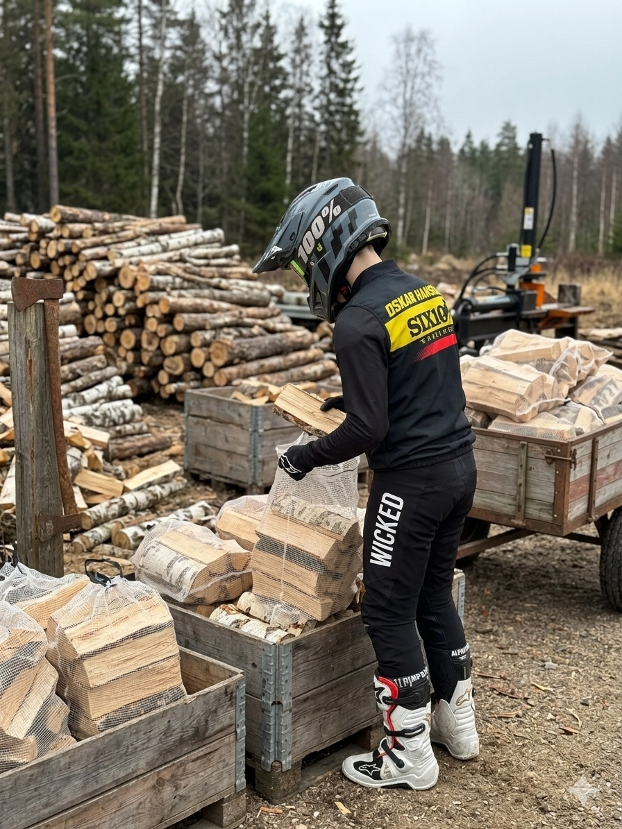 Vedbruket drivs av en passionerad 13-åring som gör vedförsäljning till sin dröm om att tävla med enduro. Beläget på en gård i Järna, använder vi endast ved från Mälardalen. Med föräldrarnas stöd i produktion och säkerhetsmoment, tar sonen hand om packning och kundkontakt. Vi siktar på kvalitet och hållbarhet.